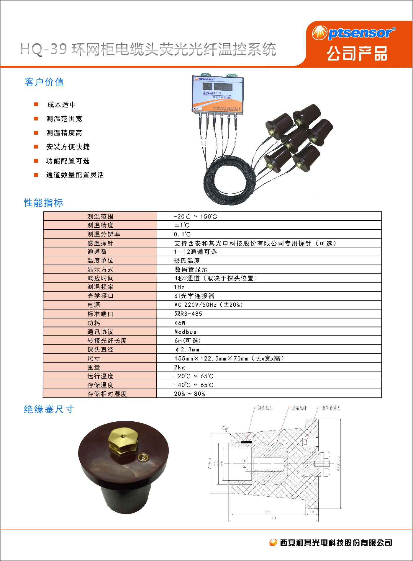 HQ-39環網櫃(guì)電(diàn)纜頭熒光光纖溫控系統